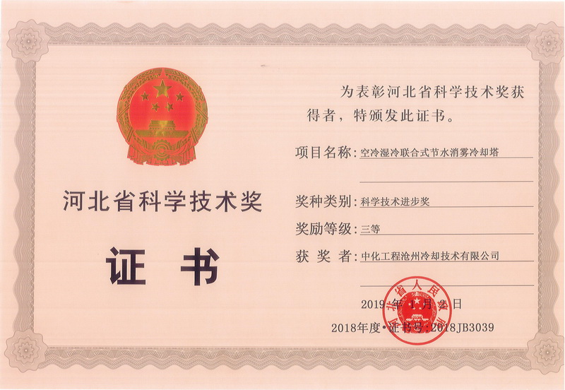 河北省科学技术奖证书