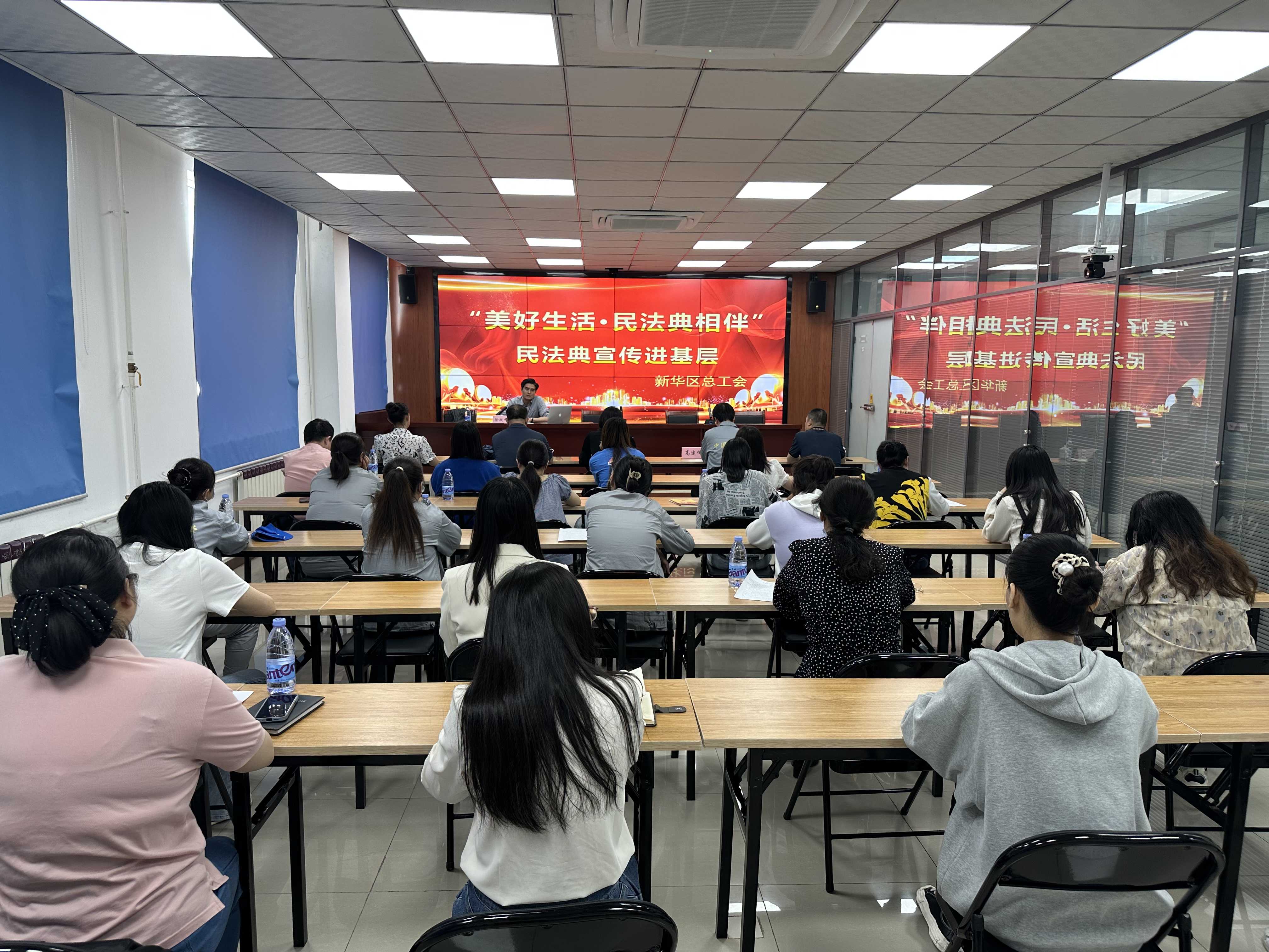 5月25日,新华区总工会走进沧冷公司开展党的二十大宣讲暨民法典宣传活动。省能源化工工会二级调研员宋坤,新华区工会党组书记、常务副主席滕学军,工会副主席李刚,工会党组成员、副主席张雪出席了本次活动,活动由公司副总经理高建伟主持。