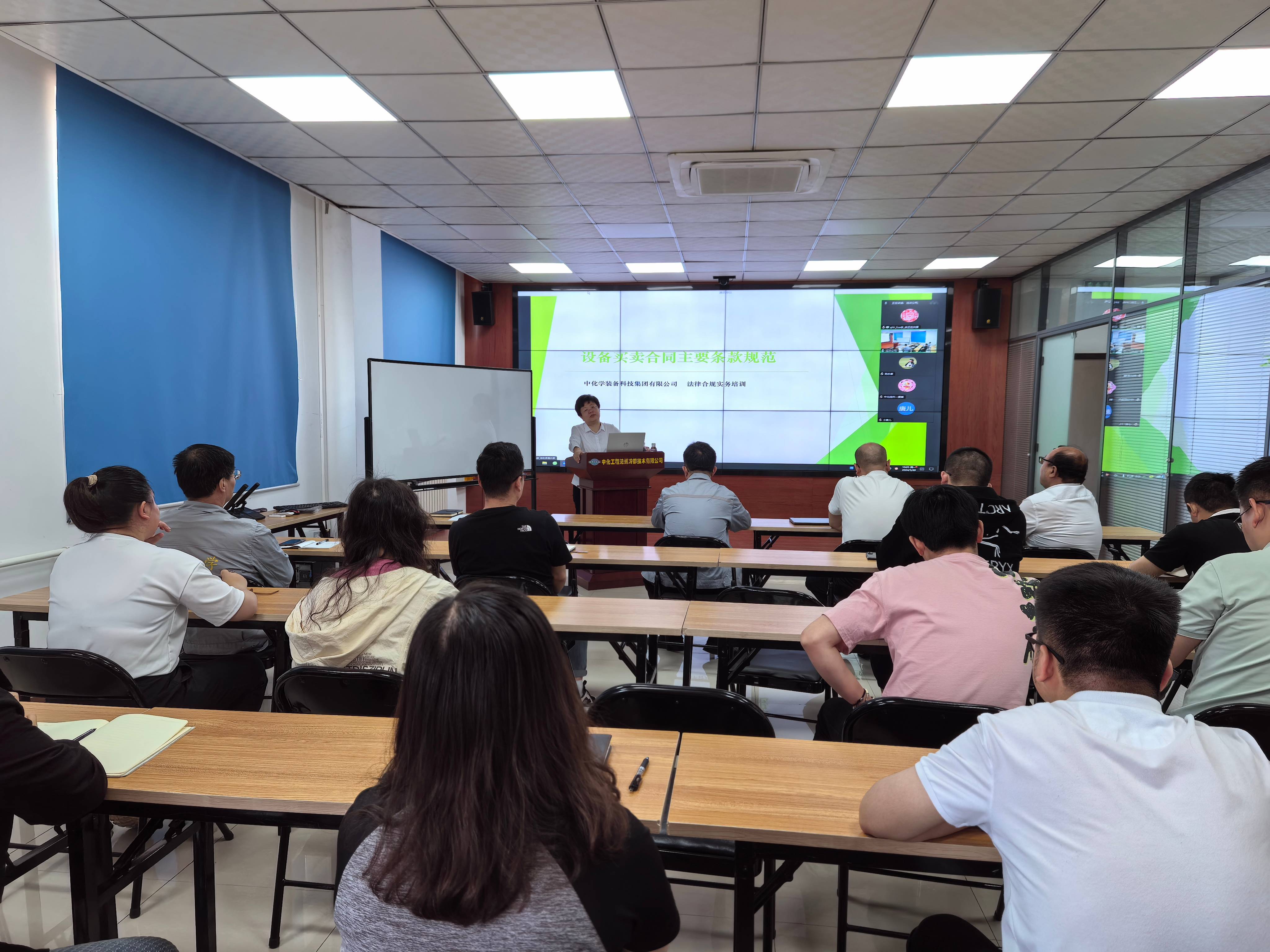 为进一步提高合同管理人员的法律意识,规范公司合同管理工作。5月20日,沧冷公司在四楼会议室组织了设备买卖合同主要条款规范培训暨守住法律底线预防职务犯罪培训会,各职能部室负责人、业务骨干近30余人参加了此次培训,培训特邀装备科技公司办公厅(投资规划部、法律合规部)副主任秦海华前来授课。